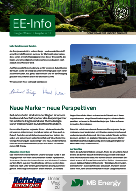 die Energiewende ist in vollem Gange – und neue kohlenstoffarme Brennstoffe stehen kurz vor der Marktreife oder haben diese schon erreicht. Flüssiggas ist einer dieser Brennstoffe, die Kosten und Umwelt gleichermaßen schonen und zudem noch absolut zukunftssicher sind. Auch für uns steht eine Änderung an: Wir werden in Zukunft unter der neuen Marke MB Energy als Unternehmensgruppe noch näher zusammenrücken. Was genau das bedeutet und wie der Übergang gestaltet wird, erfahren Sie in der aktuellen EE-Info.