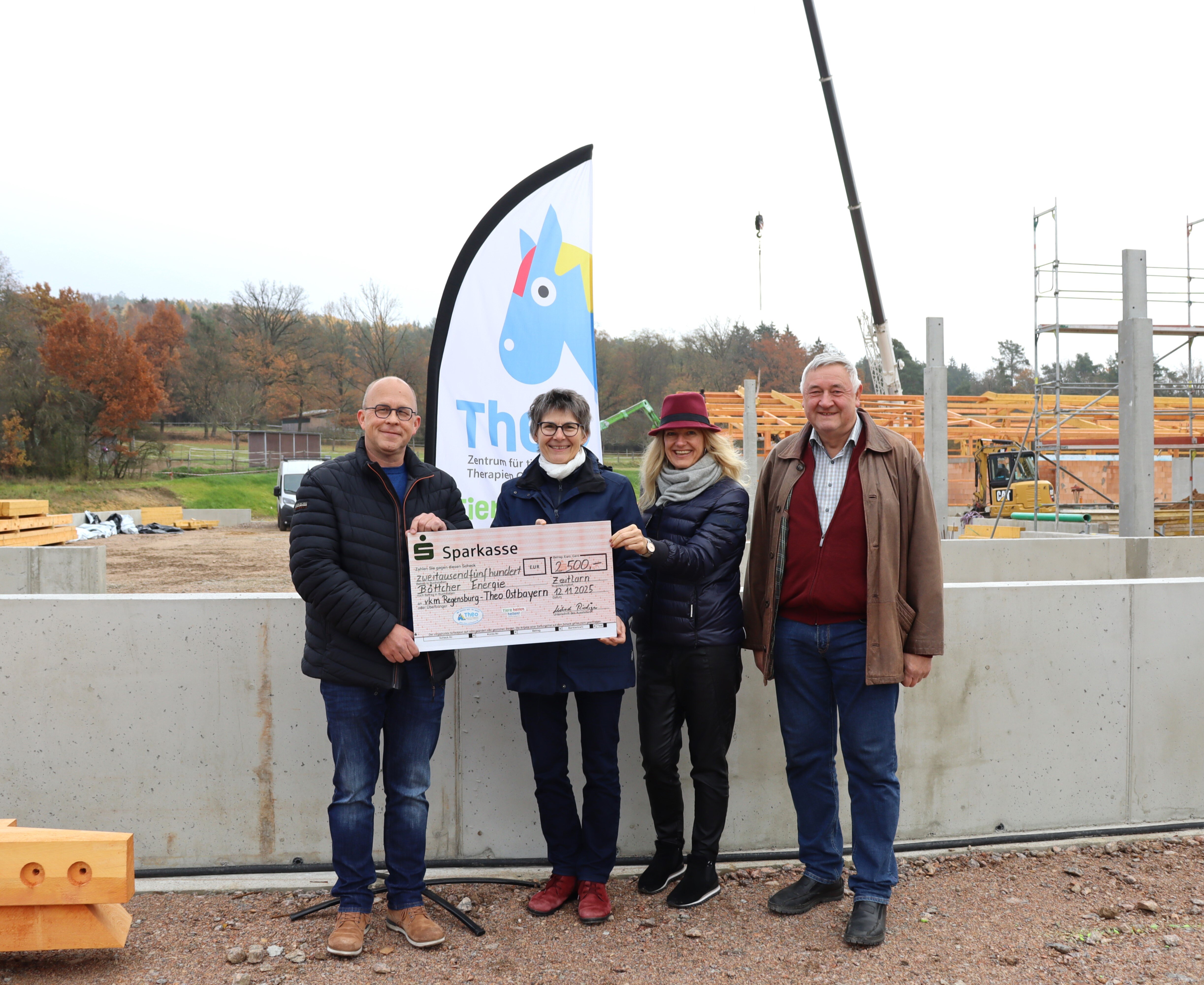 Eine großzügige Spende in Höhe von 2.500 Euro durfte das Theo – Zentrum für tiergestützte Therapien entgegennehmen. Überreicht wurde der Spendenscheck von unserem Geschäftsführer Michael Riediger und unserer Marketing Managerin Tanja Ebenhöch im Namen der Böttcher Energie auf der Baustelle in Zeitlarn. Mit der Spende unterstützen wir die wertvolle Arbeit des Theo-Zentrums, das sich auf tiergestützte Therapie- und Förderangebote für Kinder, Jugendliche und Erwachsene spezialisiert hat. Die Einrichtung setzt unter anderem Pferde und Kleintiere ein, um Menschen in besonderen Lebenssituationen zu begleiten und zu fördern.